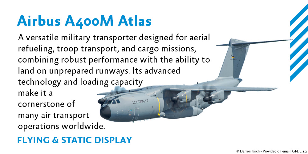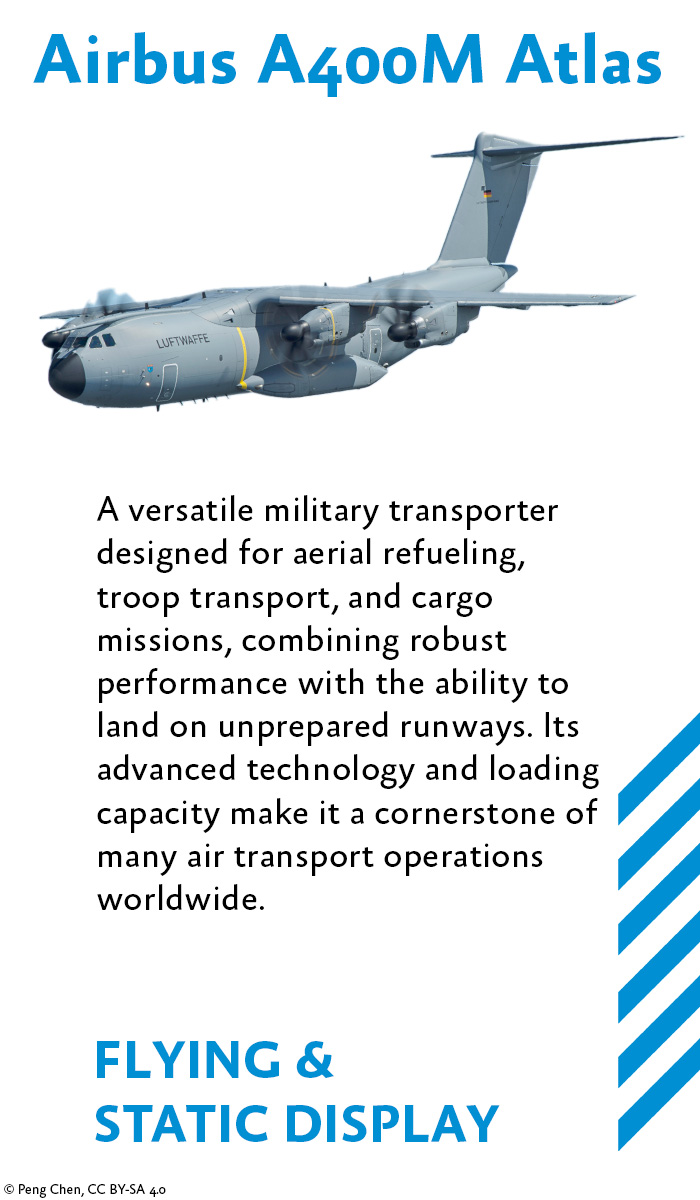 Unsere Flugvorführung ist ständig im Wandel, bereichert durch neue Teilnehmer und überraschende Darbietungen, die oft erst im letzten Moment bestätigt werden. Wenn nicht anders beschrieben, sind alle Displays an jedem Tag verfügbar. Besuchen Sie uns regelmäßig online, um die aktuellsten Informationen zu erhalten und sicherzustellen, dass Sie keines der atemberaubenden Highlights verpassen.